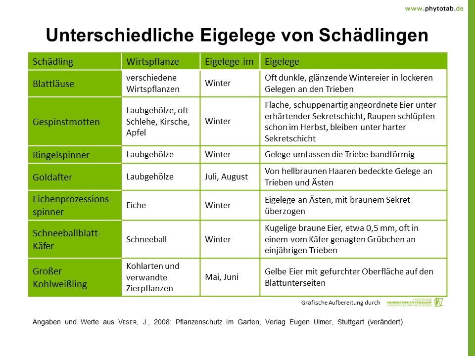 Quellen: Veser, J., 2008: Pflanzenschutz im Garten, Verlag Eugen Ulmer, Stuttgart