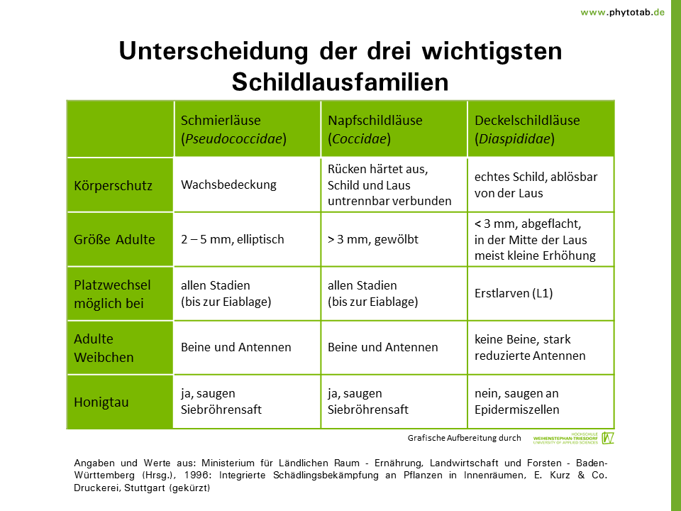 Titel: Unterscheidung der drei wichtigsten Schildlausfamilien