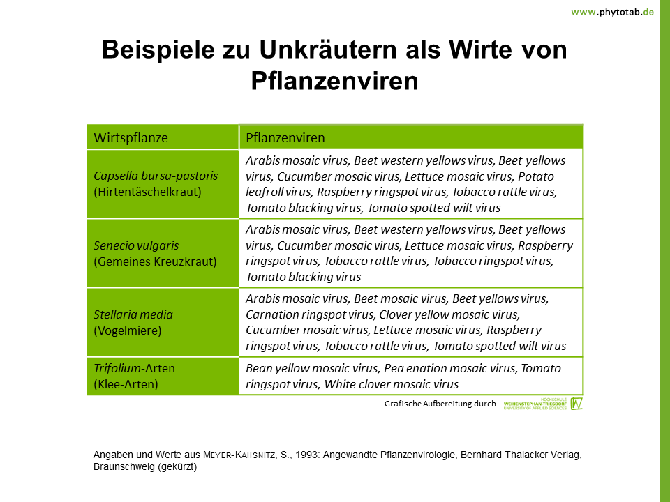 Titel: Beispiele zu Unkräutern als Wirte von Pflanzenviren