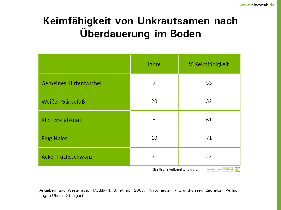 Stichwörter: Keimfähigkeit, Unkräuter