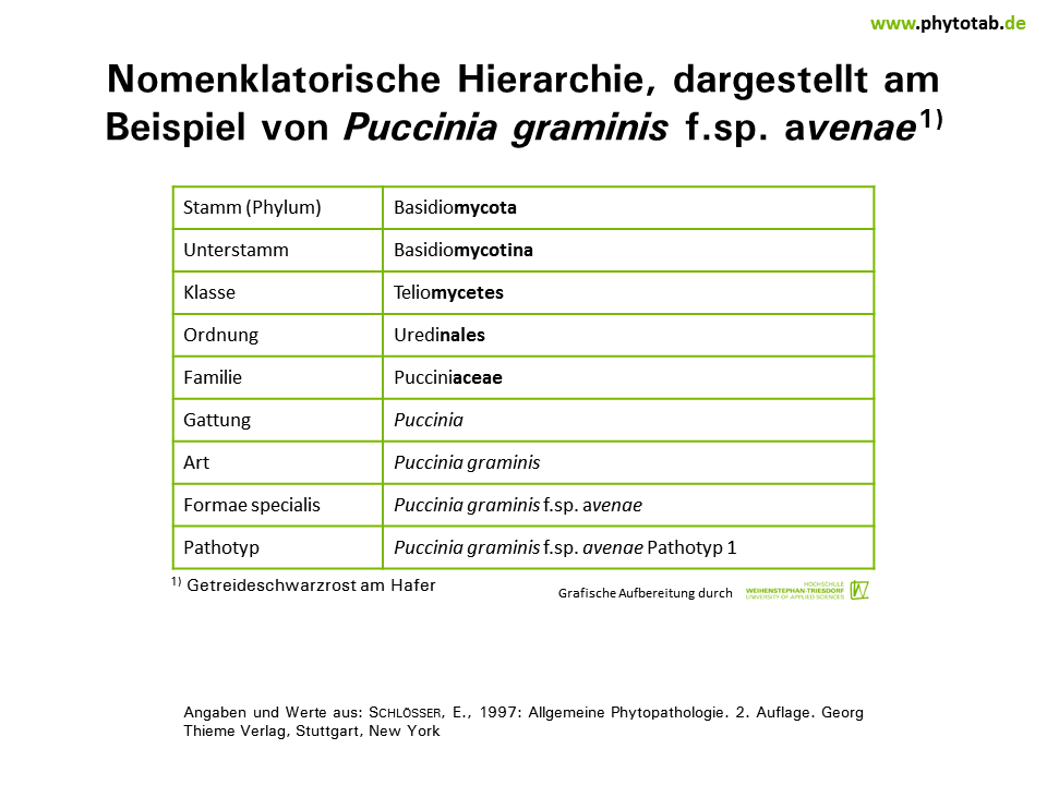 Titel: Nomenklatorische Hierarchie, dargestellt am Beispiel von Puccinia graminis f.sp. avenae