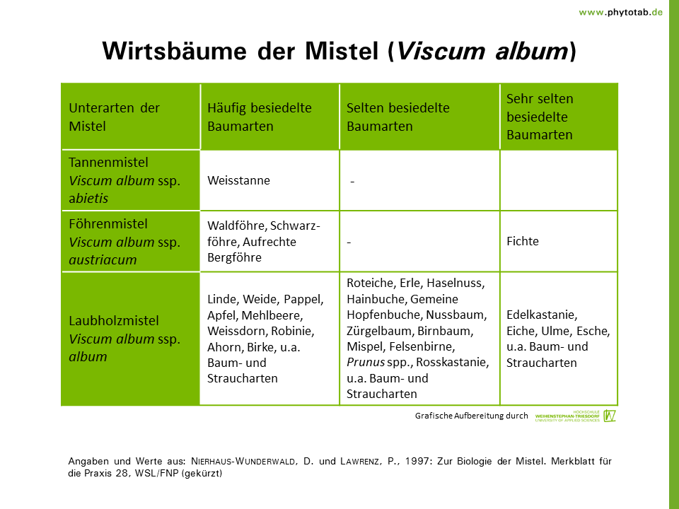 Quellen: Nierhaus-Wunderwald, D. und Lawrenz, P., 1997: Zur Biologie der Mistel. Merkblatt für die Praxis 28, WSL/FNP