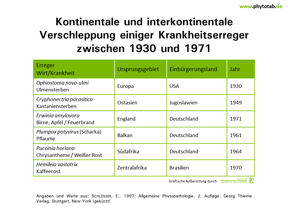 Quellen: Schlösser, E., 1997: Allgemeine Phytopathologie. 2. Auflage. Georg Thieme Verlag, Stuttgart, New York