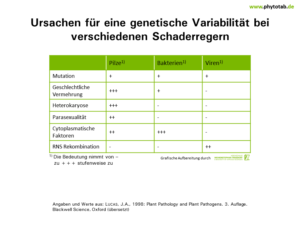 Titel: Ursachen für eine genetische Variabilität bei verschiedenen Schaderregern