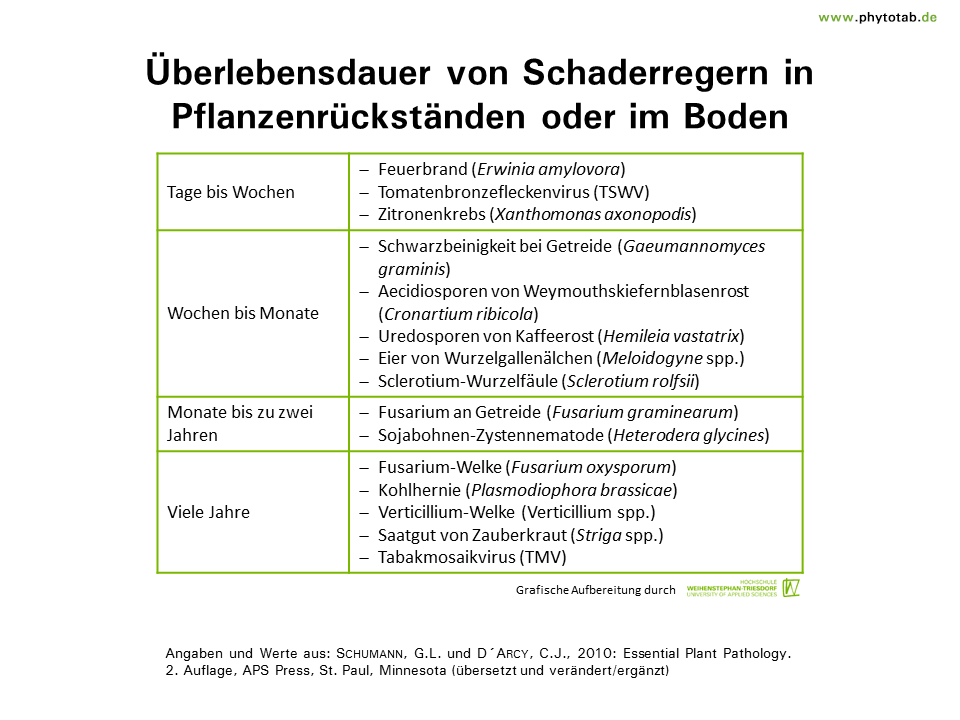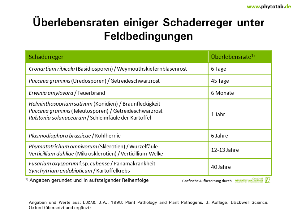 Titel: Überlebensdauer von Schaderregern in Pflanzenrückständen oder im Boden
