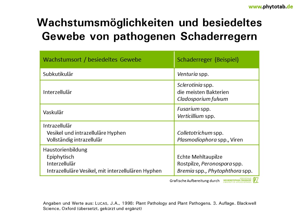 Titel: Wachstumsmöglichkeiten und besiedeltes Gewebe von pathogenen Schaderregern
