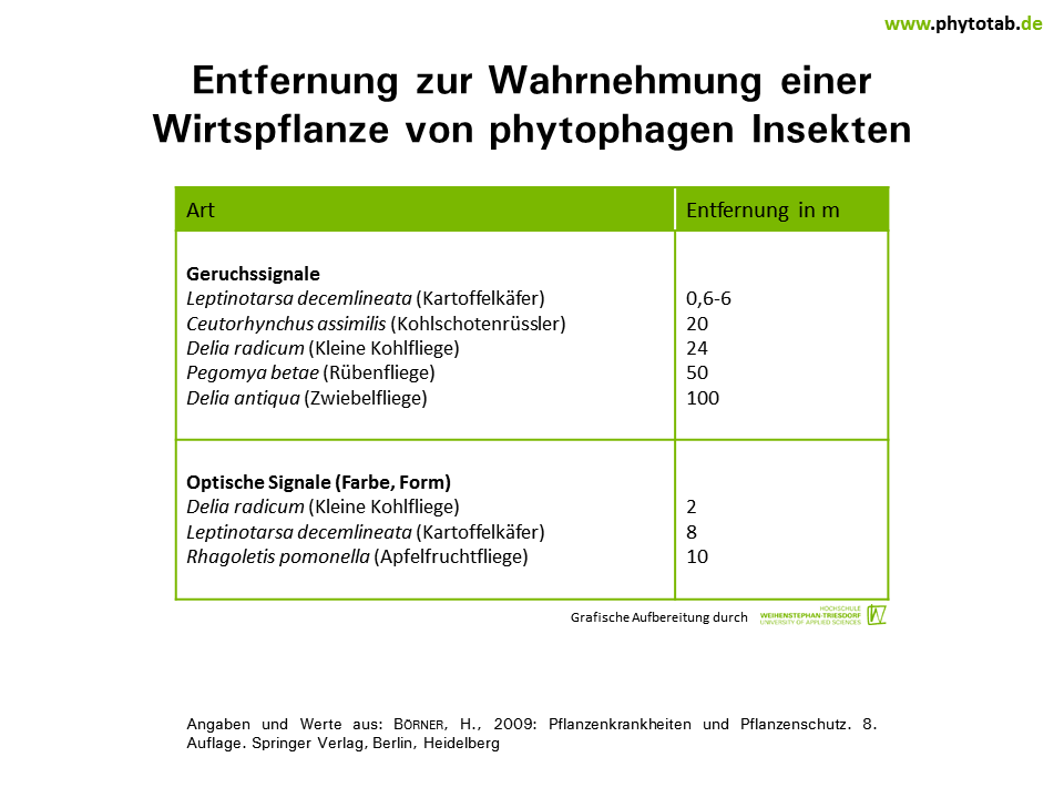 Titel: Entfernung zur Wahrnehmung einer Wirtspflanze von phytophagen Insekten