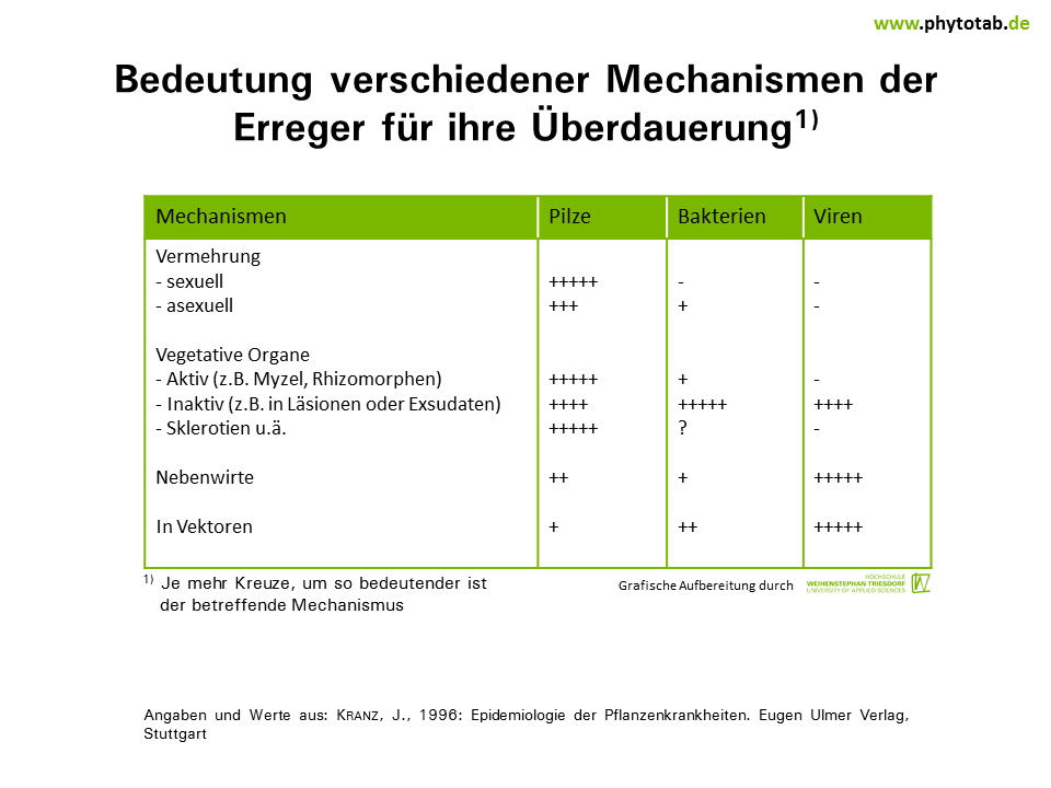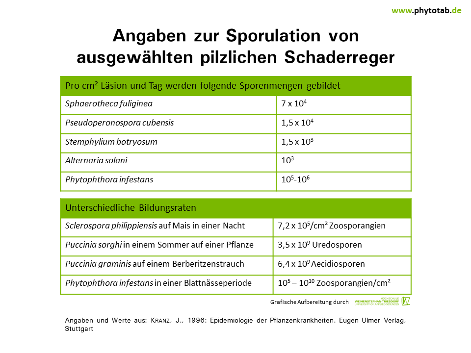 Quellen: Kranz, J., 1996: Epidemiologie der Pflanzenkrankheiten. Eugen Ulmer Verlag, Stuttgart