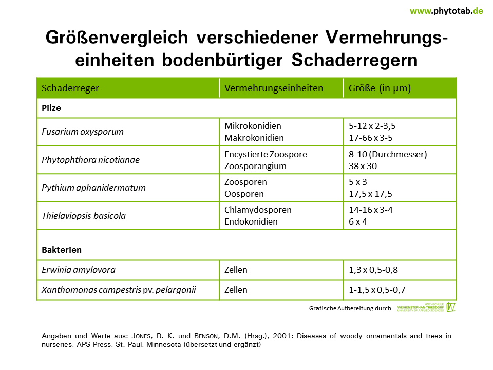 Titel: Größenvergleich verschiedener Vermehrungseinheiten bodenbürtiger Schaderregern