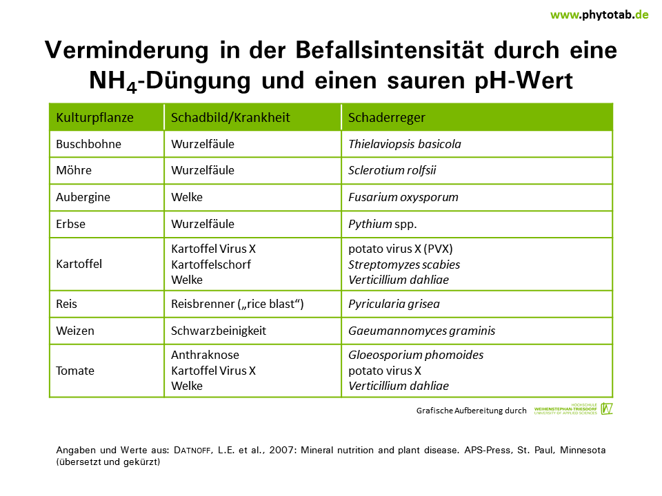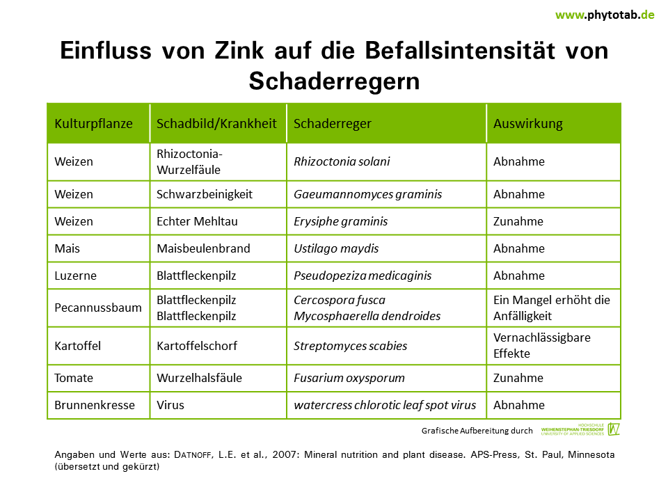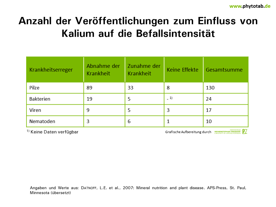 Quellen: Datnoff, L. E. et al., 2007: Mineral nutrition and plant disease. APS-Press, St. Paul, Minnesota