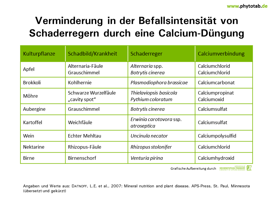 Titel: Verminderung in der Befallsintensität von Schaderregern durch eine Calcium-Düngung