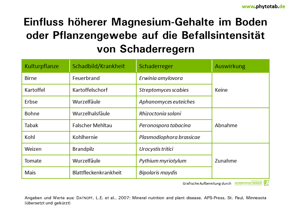 Titel: Einfluss höherer Magnesium-Gehalte im Boden oder Pflanzengewebe auf die Befallsintensität von Schaderregern