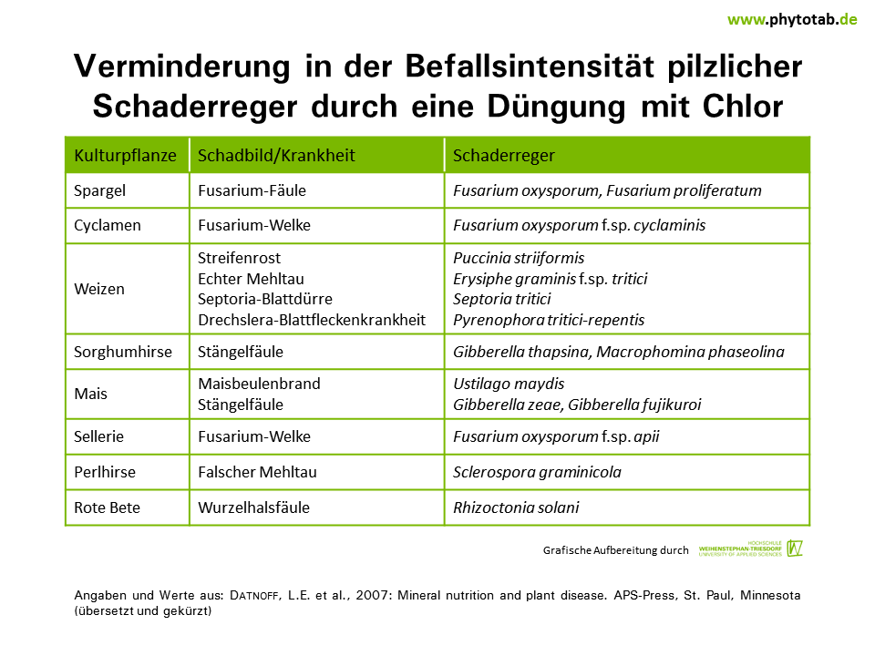 Titel: Verminderung in der Befallsintensität pilzlicher Schaderreger durch eine Düngung mit Chlor