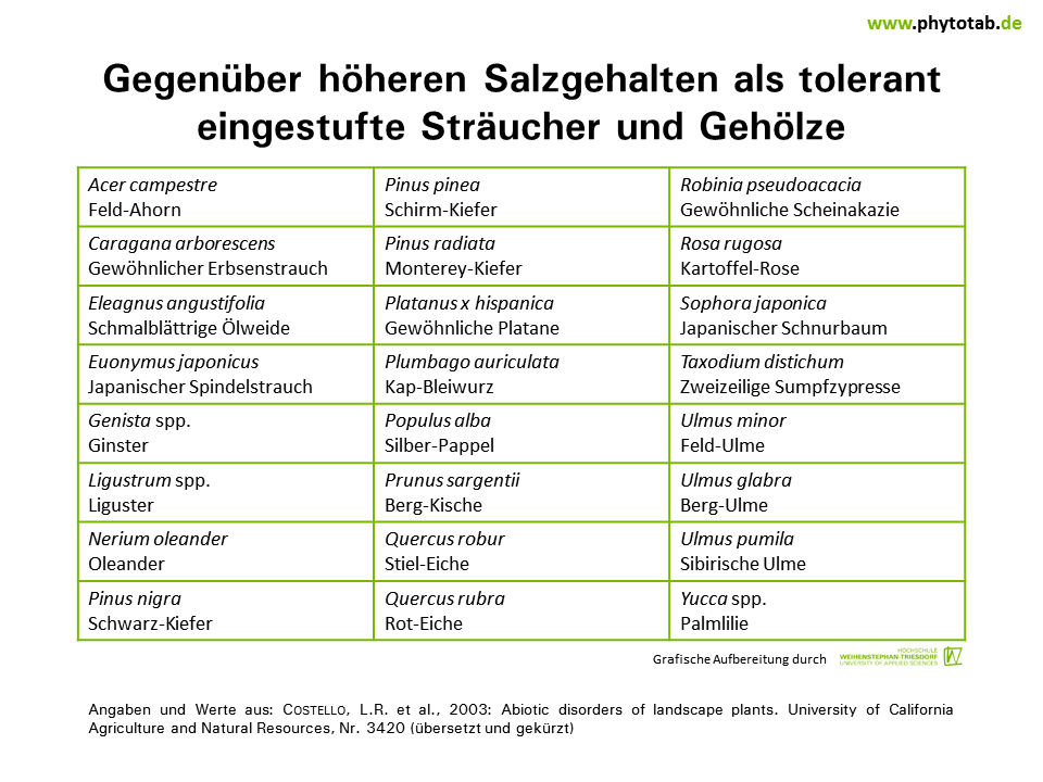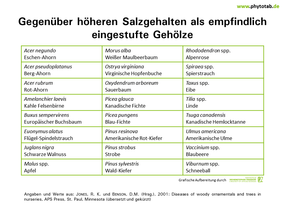Titel: Gegenüber höheren Salzgehalten als empfindlich eingestufte Gehölze
