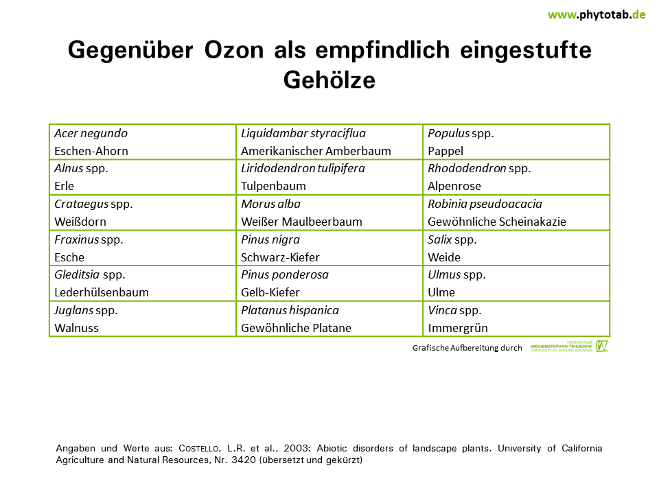Titel: Gegenüber Ozon als empfindlich eingestufte Gehölze