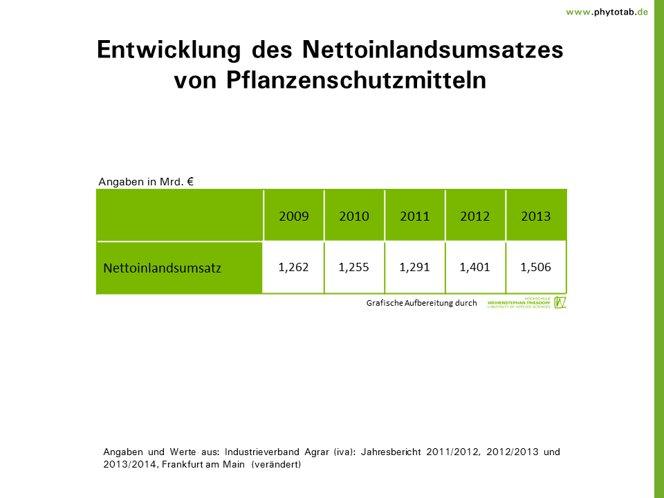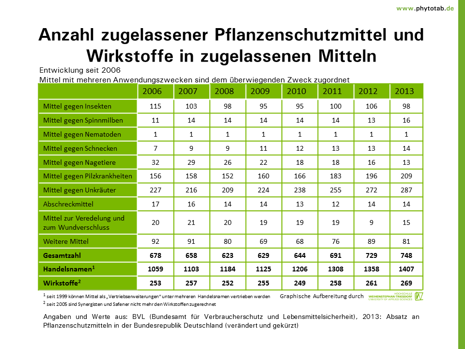 Quellen: BVL (Bundesamt für Verbraucherschutz und Lebensmittelsicherheit), 2013: Absatz an Pflanzenschutzmitteln in der Bundesrepublik Deutschland