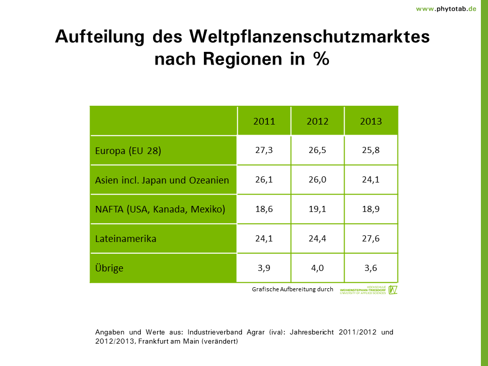 Titel: Aufteilung des Weltpflanzenschutzmarktes nach Regionen in %