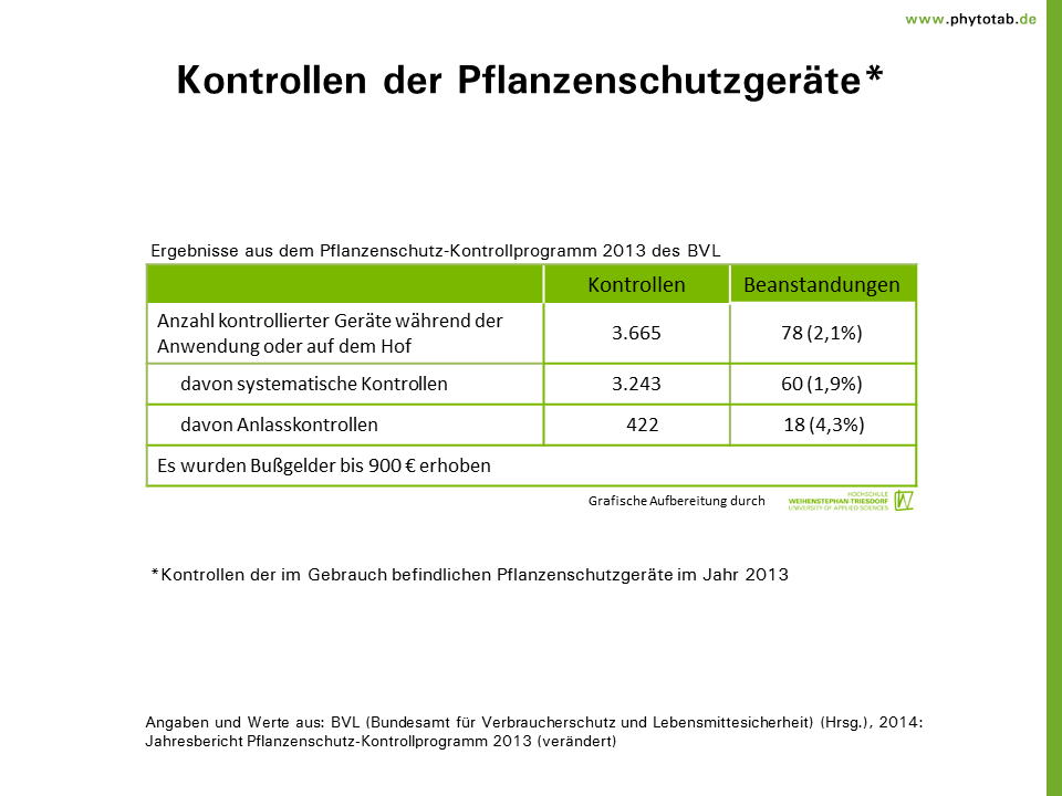 Quellen: BVL (Bundesamt für Verbraucherschutz und Lebensmittelsicherheit) (Hrsg.), 2014: Jahresbericht Pflanzenschutz-Kontrollprogramm 2013 (verändert)