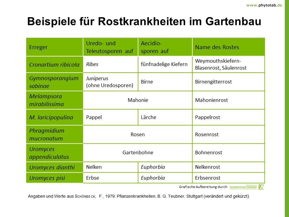 Quellen: Schönbeck, F., 1979: Pflanzenkrankheiten, B. G. Teubner, Stuttgart