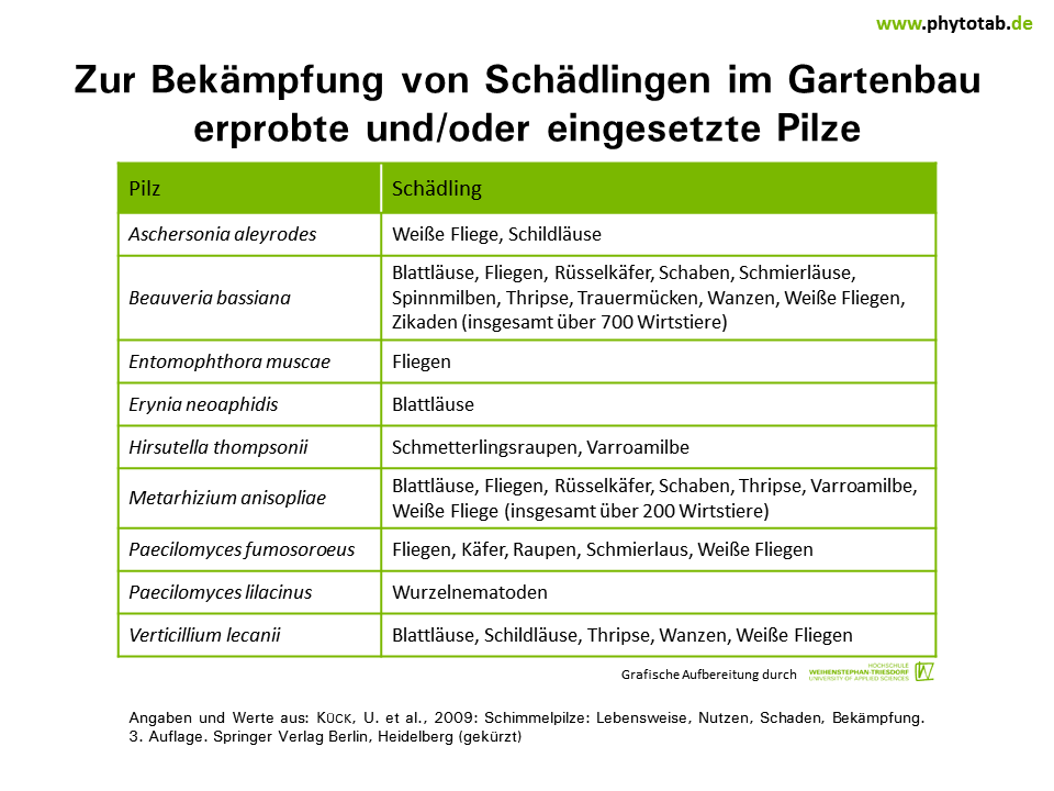 Titel: Zur Bekämpfung von Schädlingen im Gartenbau erprobte und/oder eingesetzte Pilze