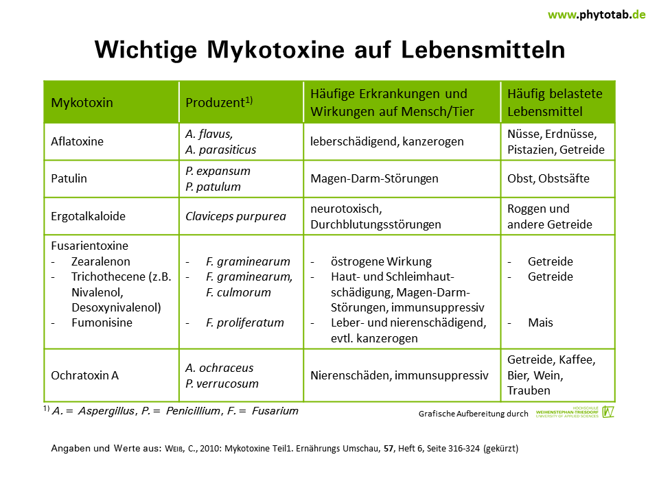 Quellen: Weiß, C., 2010: Mykotoxine Teil1. Ernährungs Umschau, 57, Heft 6, Seite 316-324