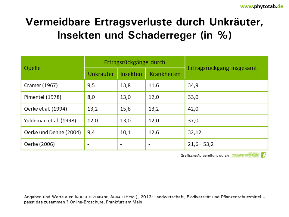 Titel: Vermeidbare Ertragsverluste durch Unkräuter, Insekten und Schaderreger (in %)